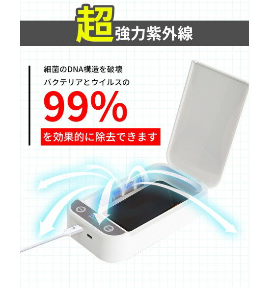 紫外線 ランプ 紫外線照射機 UVCライト 照射方法はとっても簡単! スマホを「スマートクリーナー」のBOX内にセットして、ボタンをON。