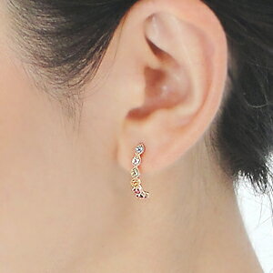 緩やかなカーブを描く美しいラインに、厳選された7色のカラーストーンをセットしたピアス。